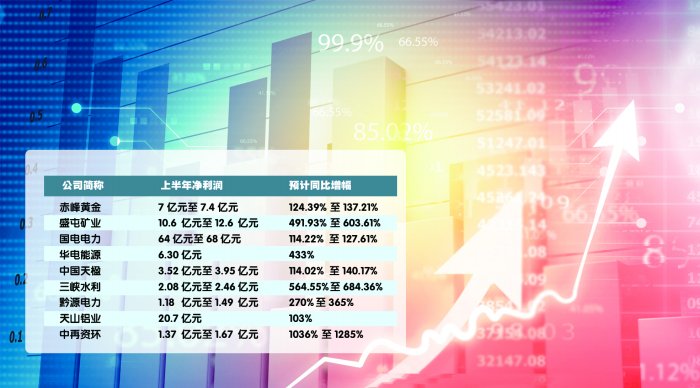 赤峰黄金7月11日晚公告,预计上半年实现归母净利润7亿元至7.4亿元,同比增长124.39%至137.21%。业绩增长主要由于报告期内黄金产量及销售价格较上年同期上涨。国城矿业7月10日公告称,预计上半年实现净利润4030万元至4950万元,同比增长1040.42%至1300.76%;实现扣非净利润4010万元至4930万元,同比增长1784.73%至2171.25%。报告期内,公司银精矿的产量、银精矿等产品的销售价格较上年同期有所上升。